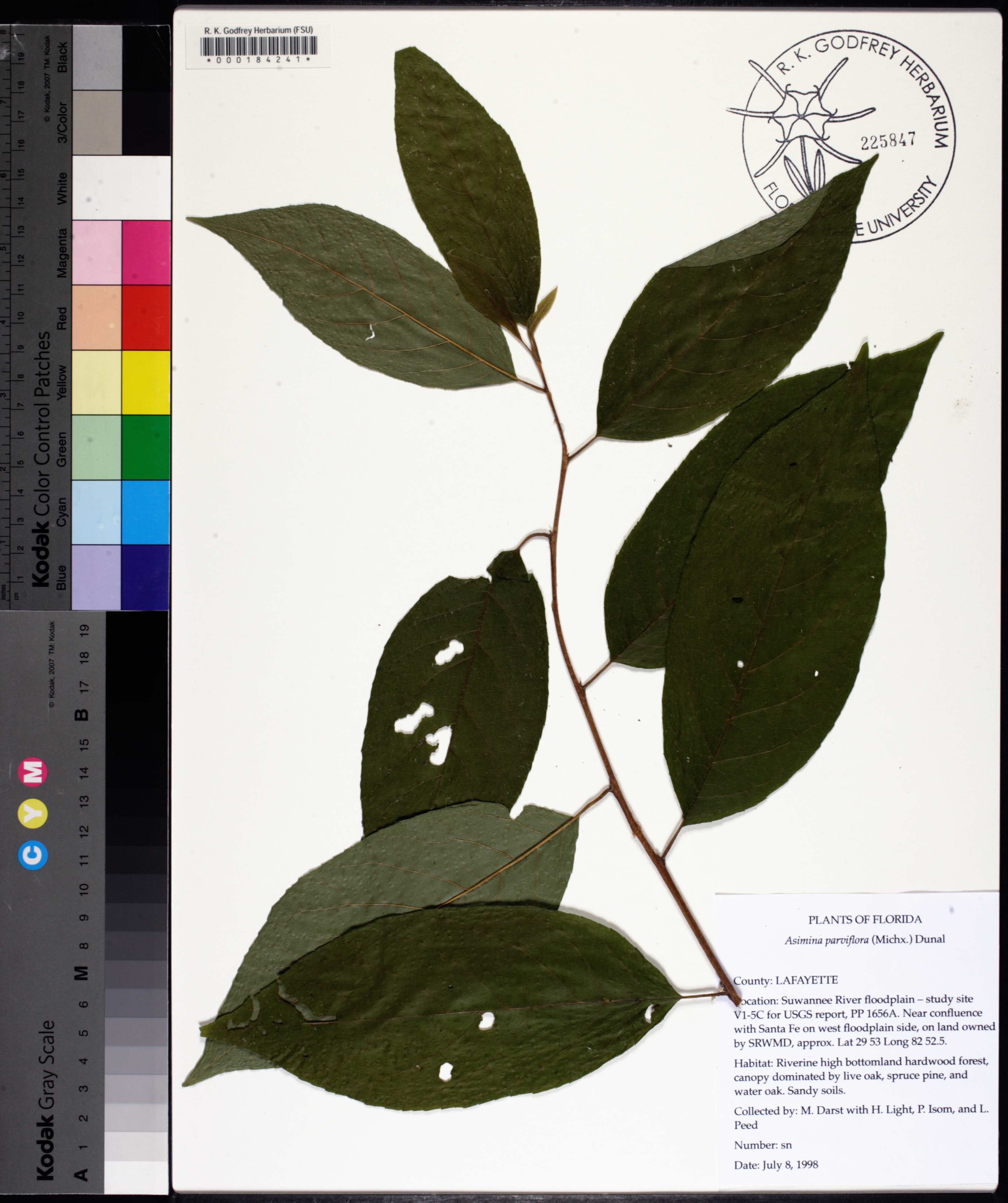 | Verbatim Directions to Locality: | Suwannee River floodplain - study site V1-5C for USGS report, PP 1656A. Near confluence with Sante Fe on west floodplain side, on land owned by SRWMD |