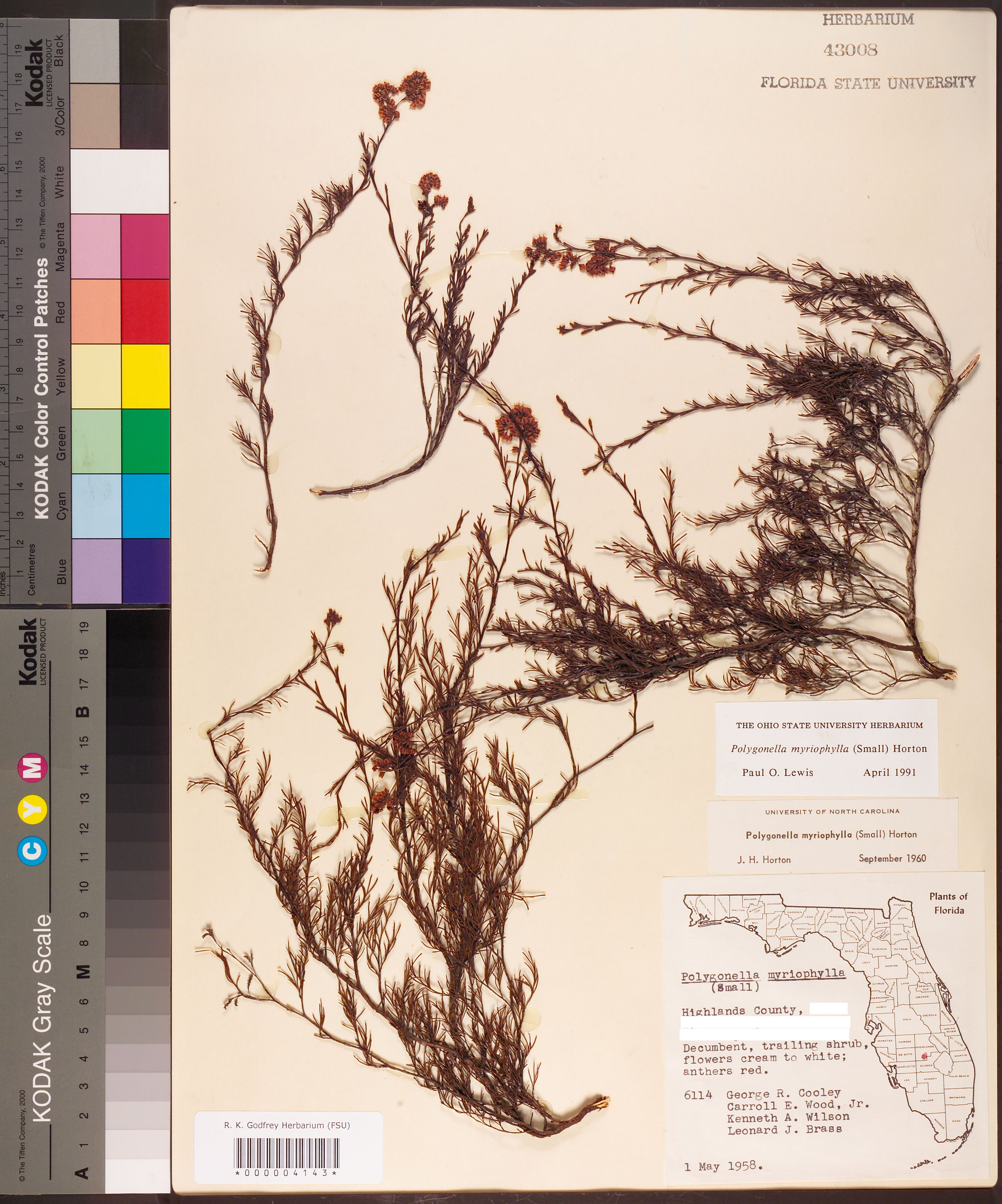 | Identification History: | Polygonella myriophylla (Small) Horton; J.H. Horton; September 1960 |