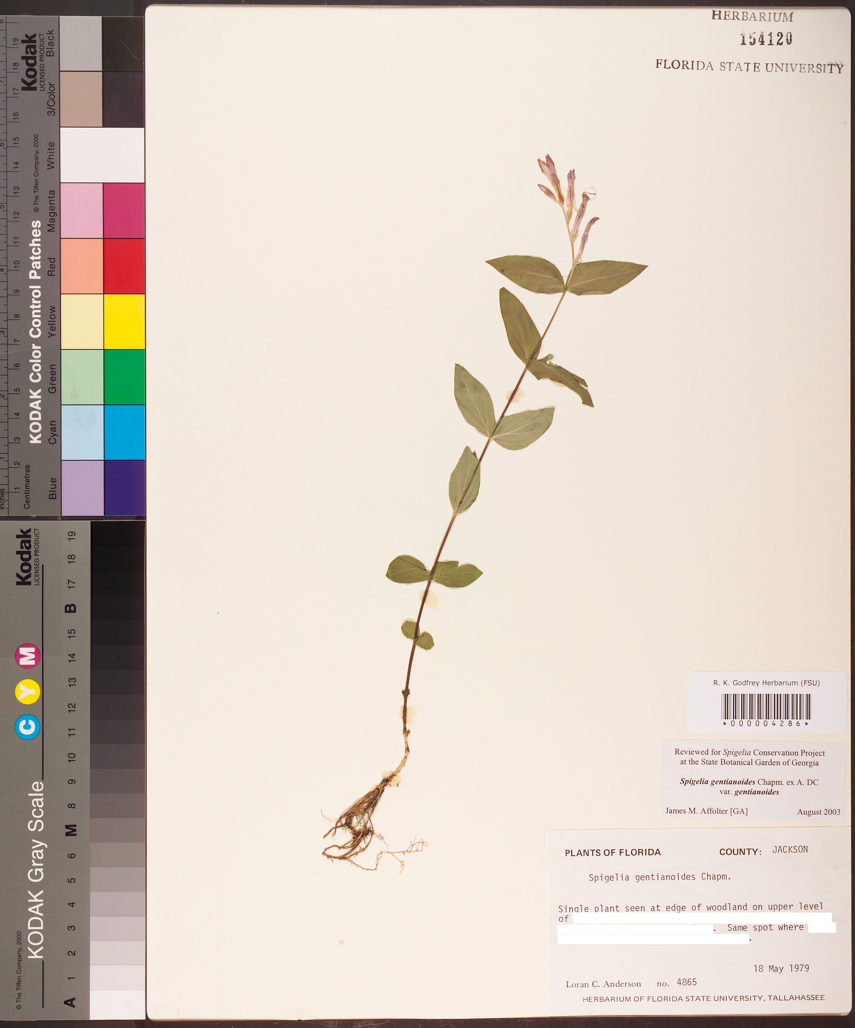 | Identification History: | Spigelia gentianoides Chapm.; coll. Loran C. Anderson; 18 May 1979 |