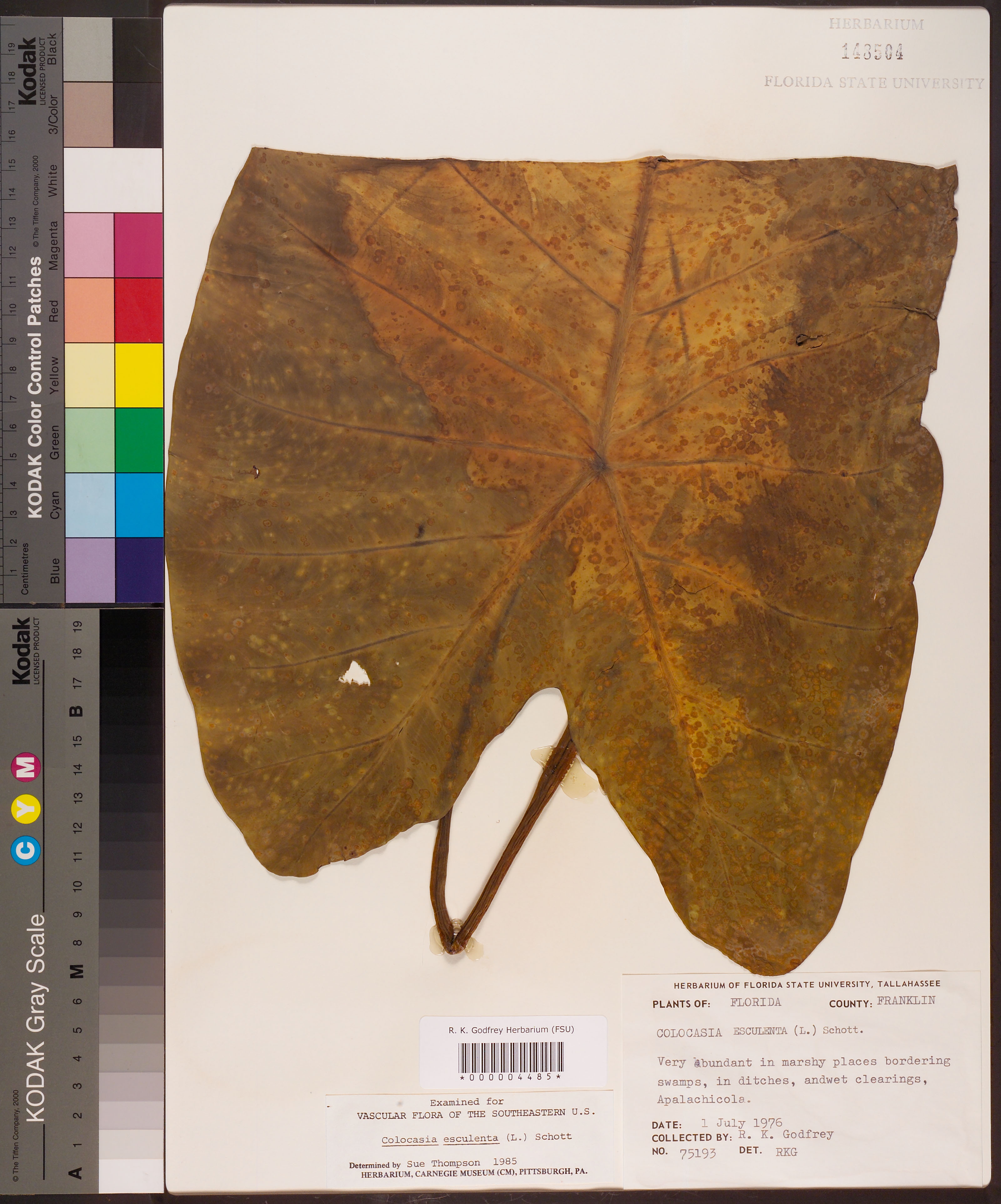 Colocasia esculenta (L.) Schott.; Examined for Vascular Flora of the Southeastern U.S., det. Sue Thompson; 1985