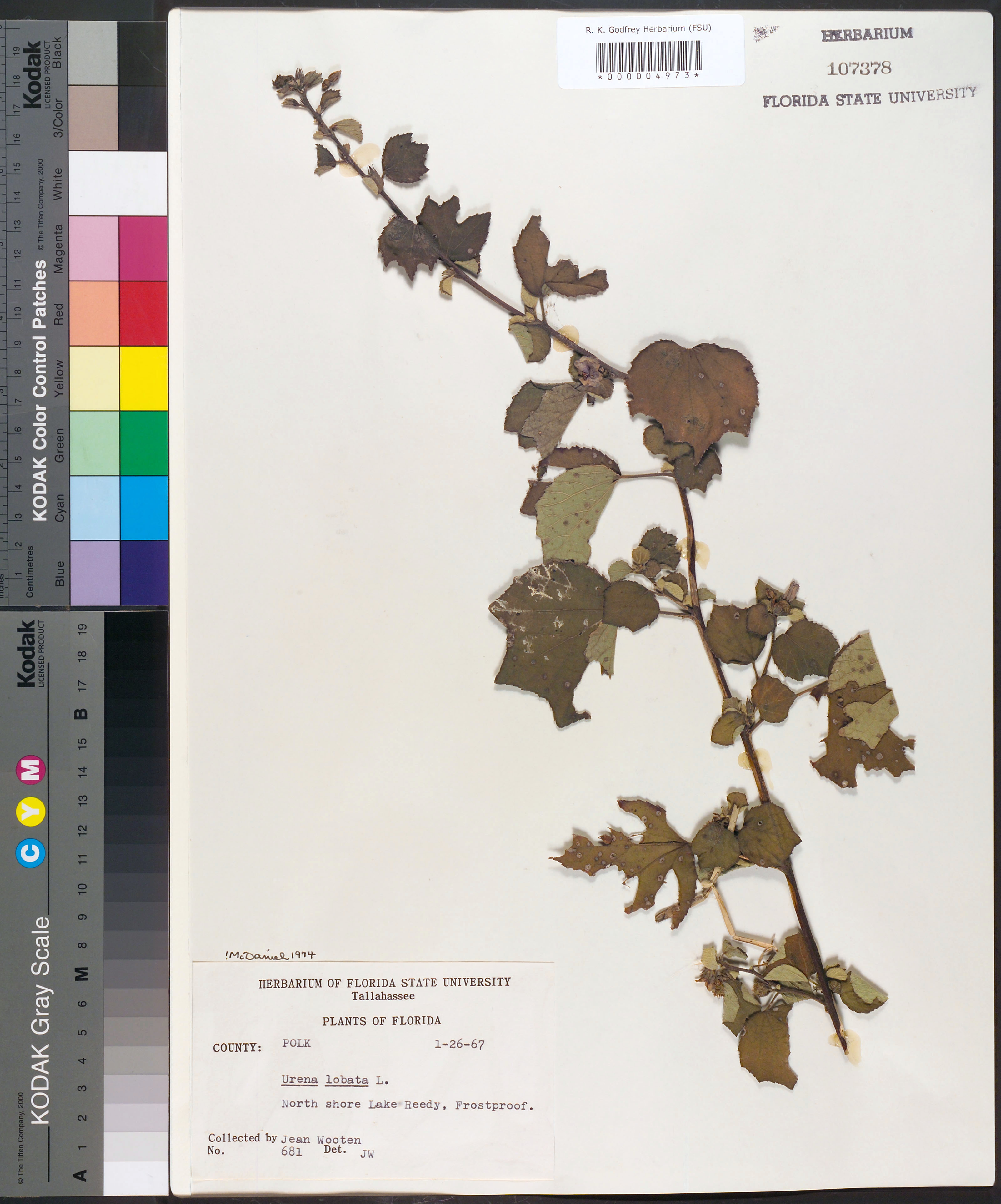 Urena lobata L.; det. JW; coll. 1-26-67