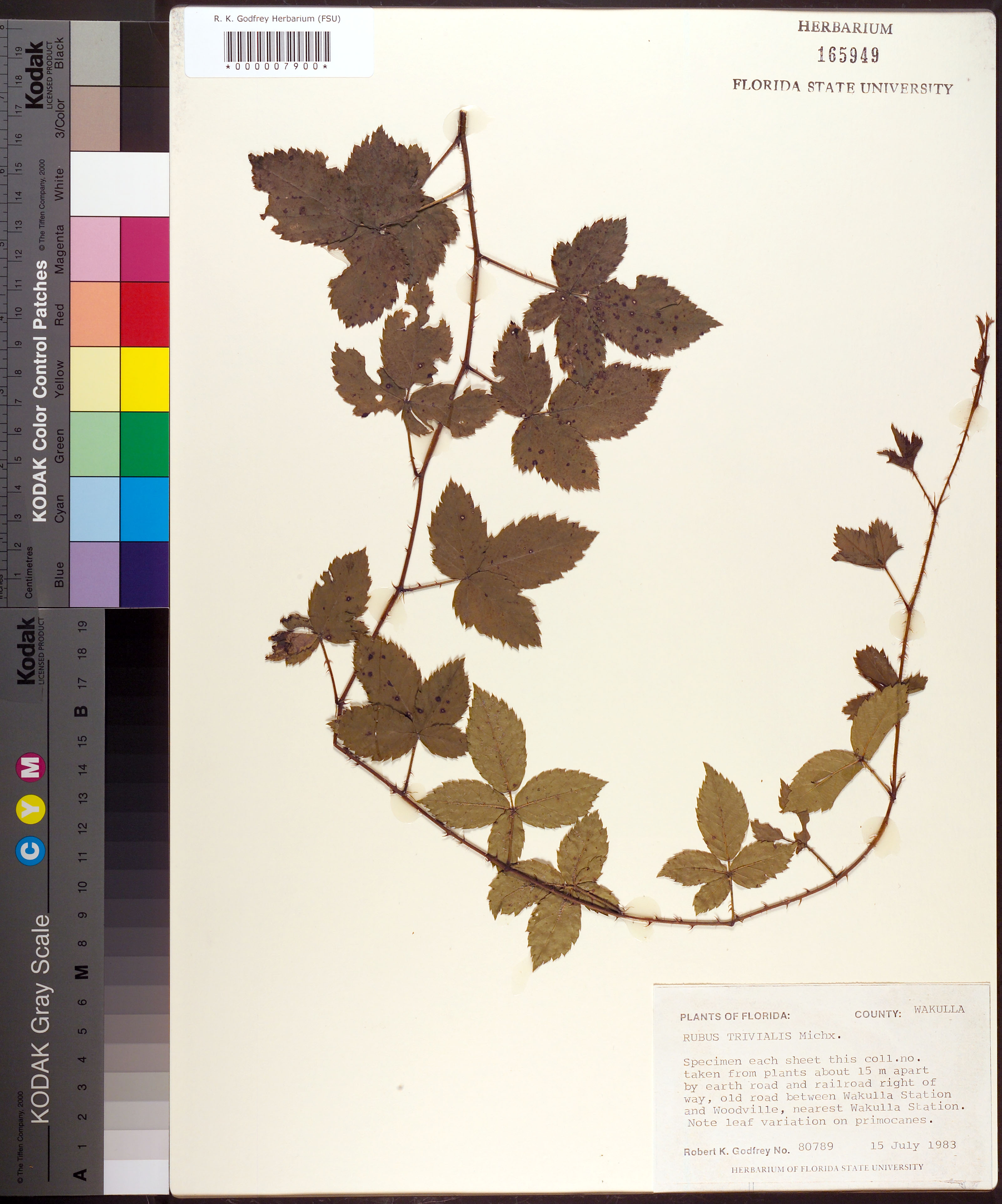 | Notes: | Robert K. Godfrey - Specimen each sheet this coll. no. taken from plants 15 m apart.