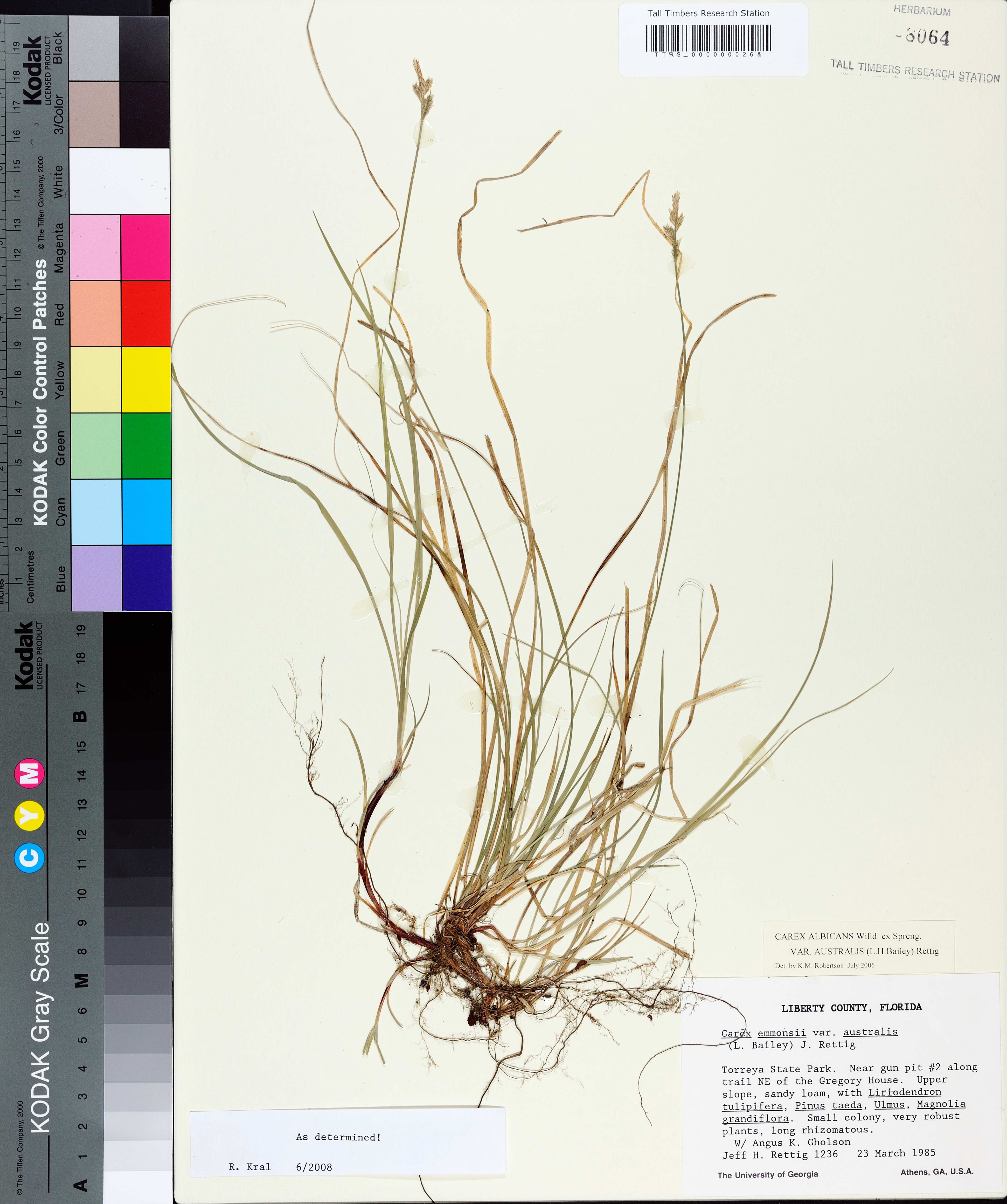 | Verbatim Directions to Locality: | Torreya State Park. Near gun pit #2 along trail NE of the Gregory House. Upper slope, sandy loam, with Liriodendron tulipifera, Pinus taeda, Ulmus, Magnolia grandiflora. Small colony, very robust plants, long rhizomatous. |