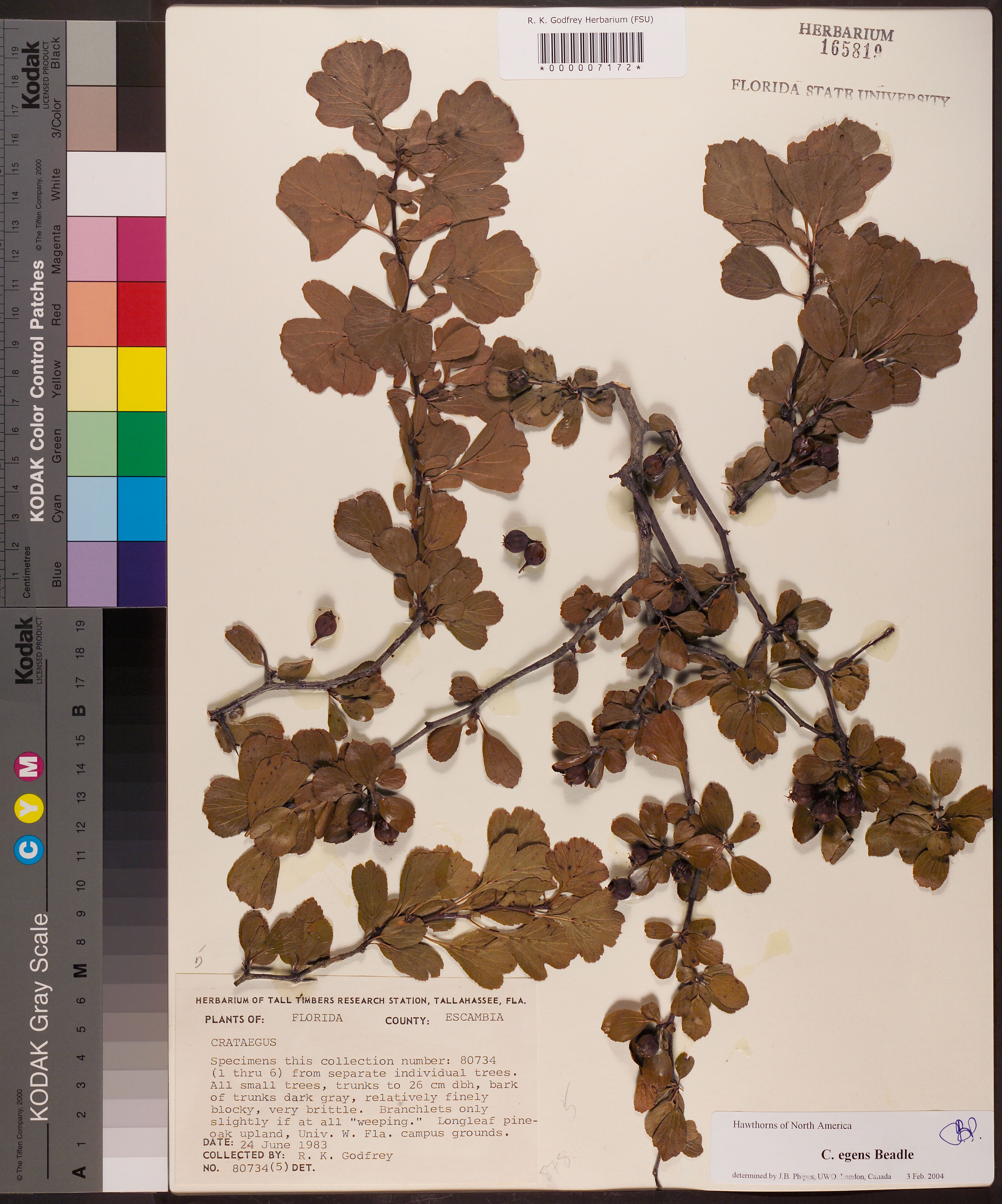 | Notes: | Robert K. Godfrey - Specimens this collection number: 80734 (1 thru 6) from separate individual trees.