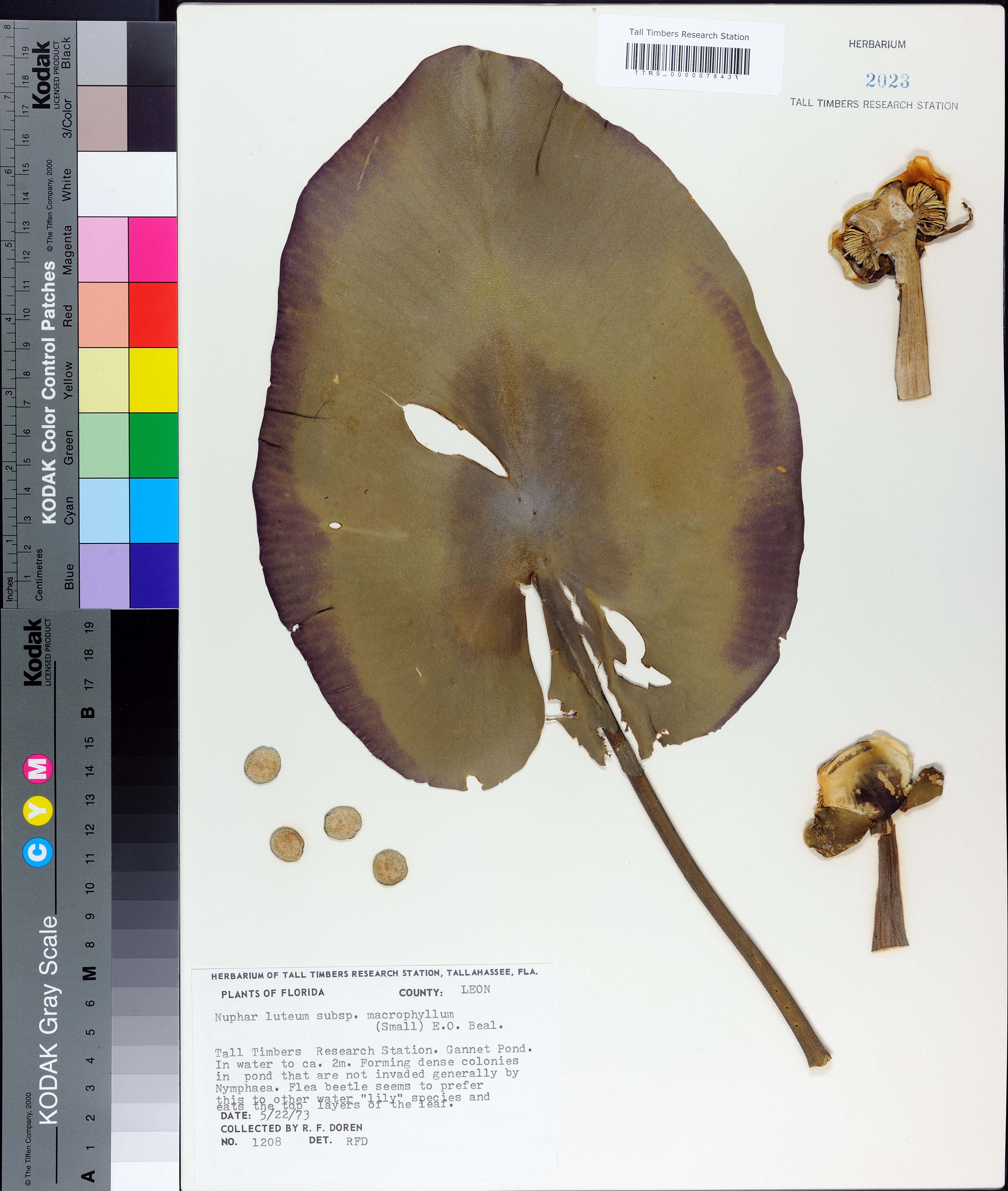 | Verbatim Directions to Locality: | Tall Timbers Research Station. Gannet Pond. In water to ca. 2m. Forming dense colonies in pond that are not invaded generally by Nymphaea. Flea beetle seems to prefer this to other water "lilly" species and eats the top layers of the leaf. |