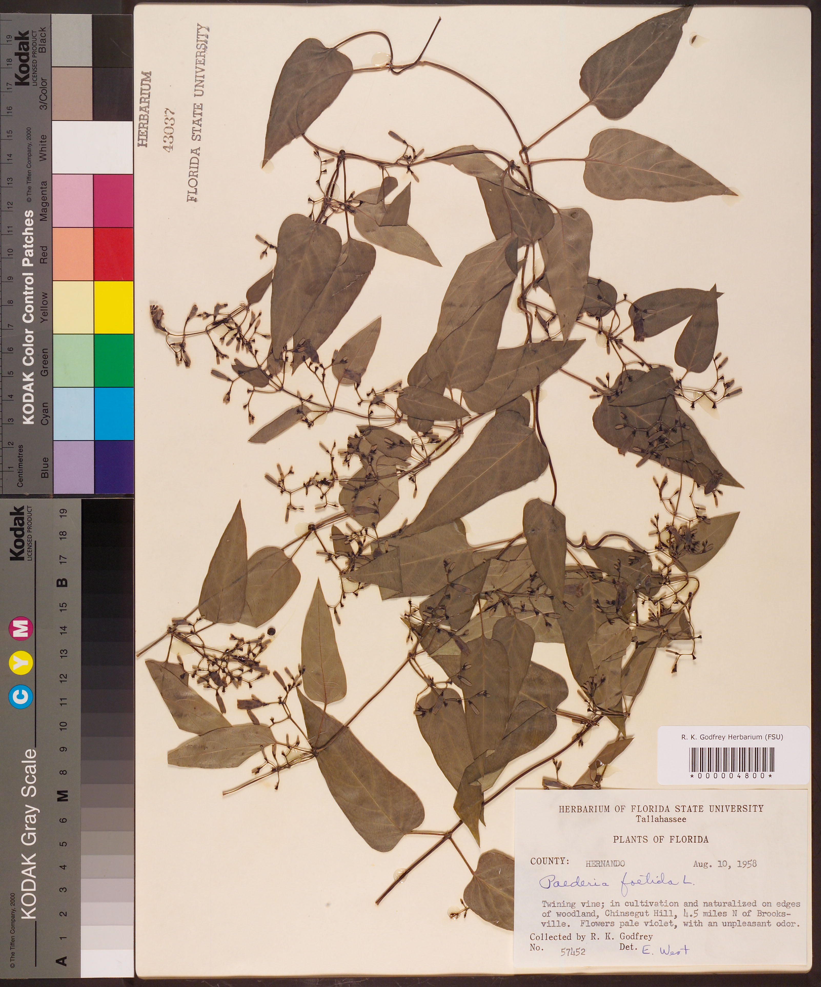 | Plant Morphology Observations: | Twining vine. Flowers pale violet, with an unpleasant odor. |