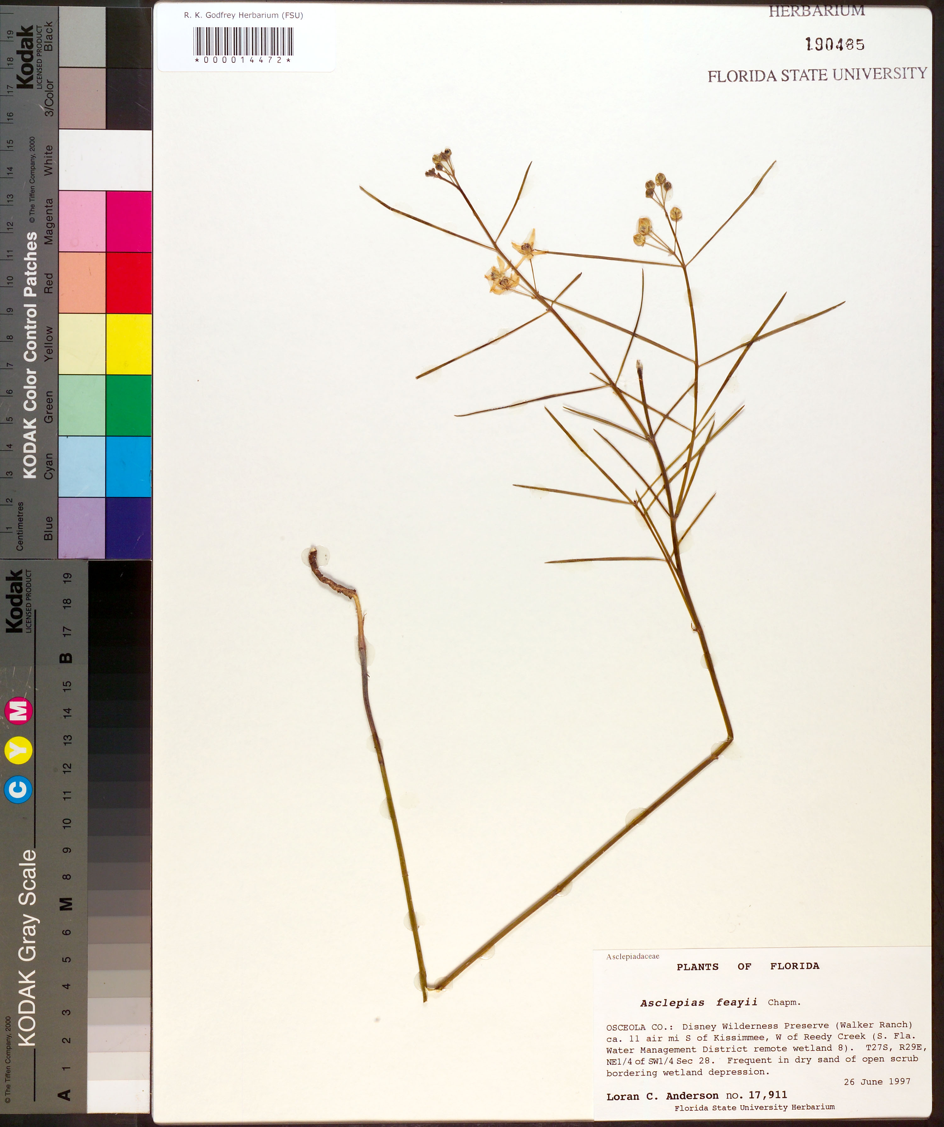 | Verbatim Directions to Locality: | Disney Wilderness Preserve (Walker Ranch) ca. 11 air mi S of Kissimmee, W of Ready Creek (S Fla Water Management Distric remote wetland 8). |