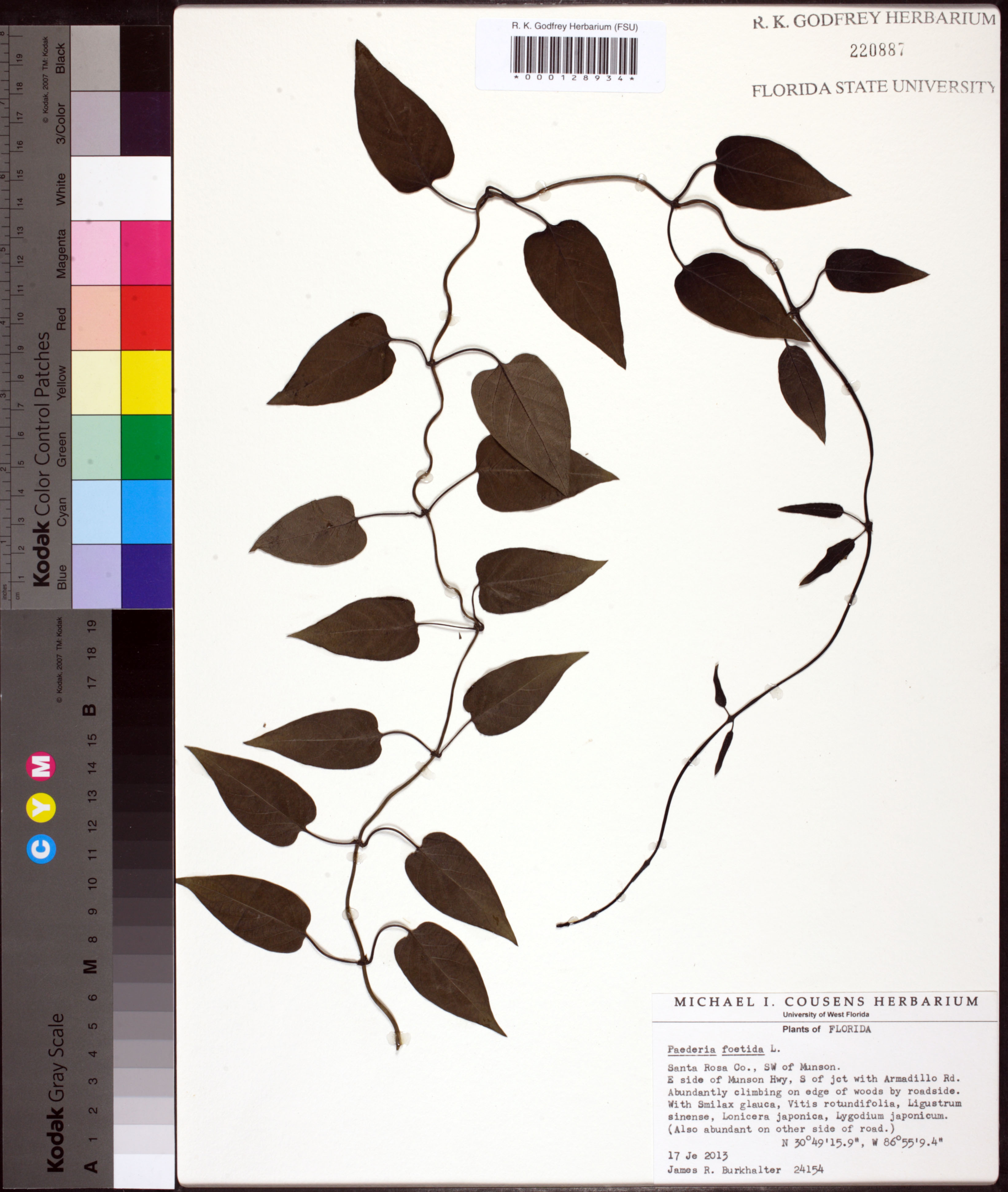 | Habitat: | Abundantly climbing on edge of woods by roadside. With Smilax glauca, Vitis rotundifolia, Ligustrum sinense, Lonicera japonica, Lygodium japonicum |