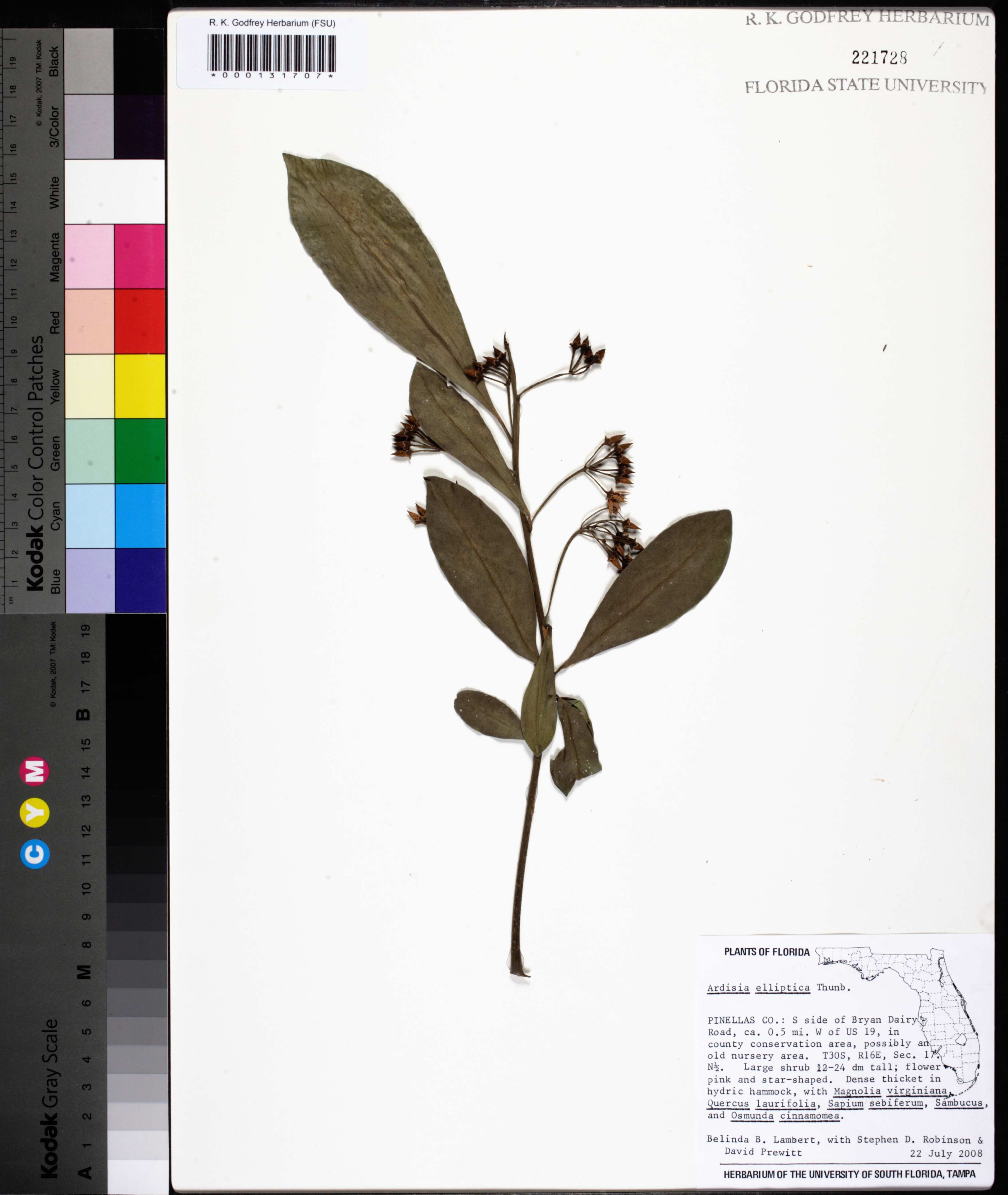 | Verbatim Directions to Locality: | S side of Bryan Dairy Road, ca. 0.5 mi. W of US 19, in county conservation area, possibly an old nursery area. T30S, R16E, Sec. 17. N 1/2 |