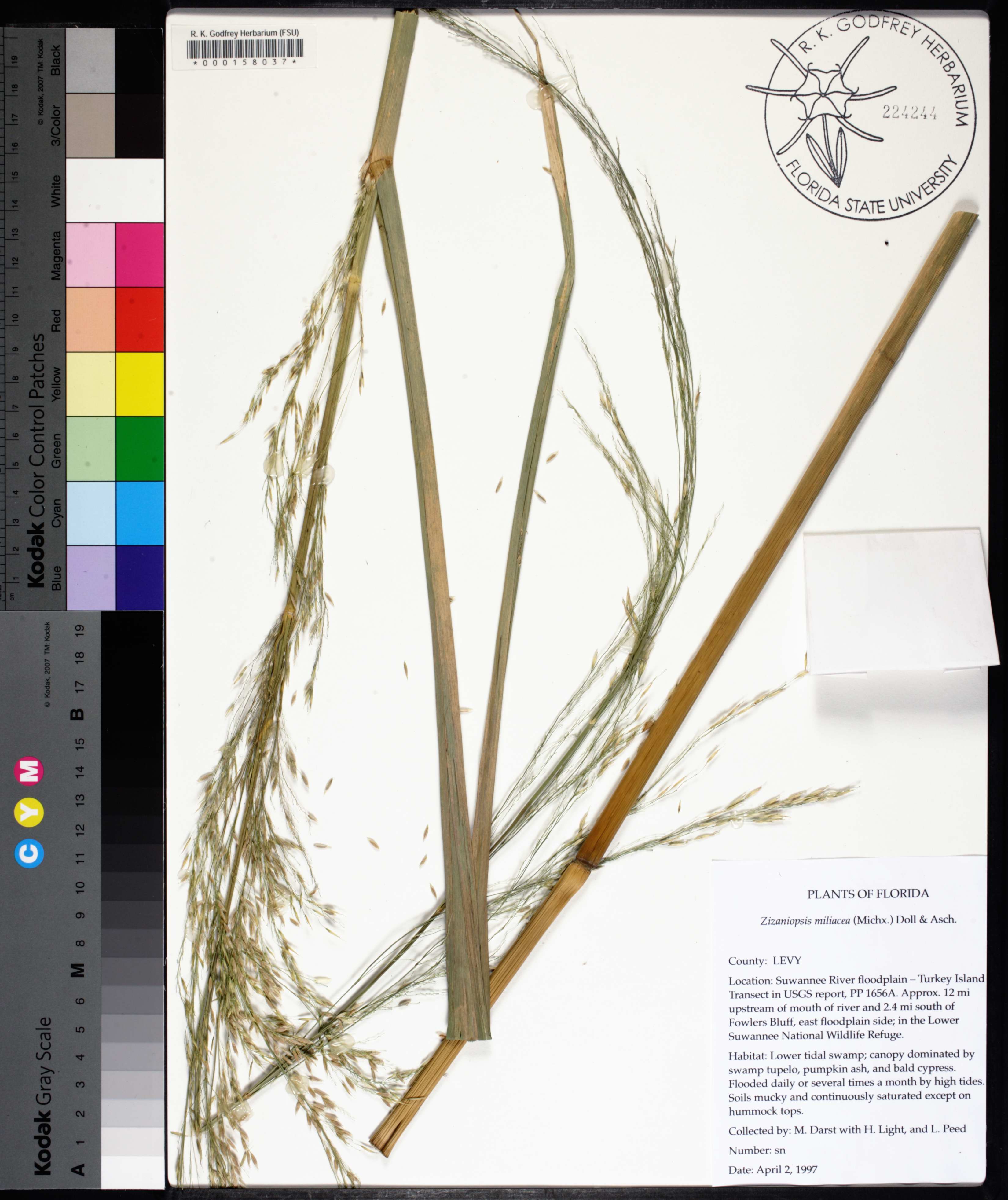 | Verbatim Directions to Locality: | Suwannee River floodplain--Turkey Island Transect in USGS report, 1656A; approx. 12 mi upstream of mouth of river and 2.4 mi south of Fowlers Bluff, east floodplain side; in the Lower Suwannee National Wildlife Refuge |
